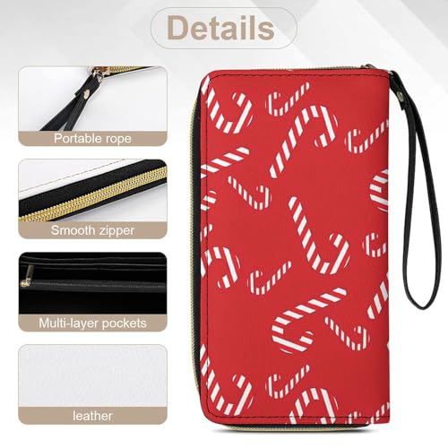 Candy Cane Pattern Large Capacity Portable Leather Wallet with Rope 4