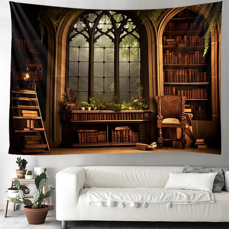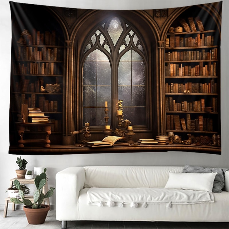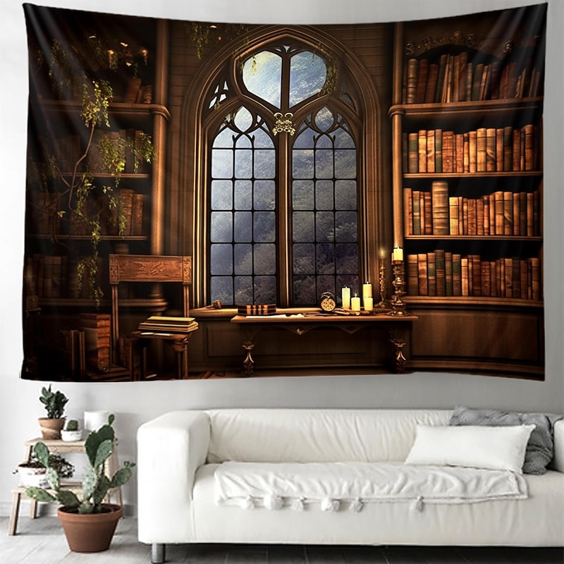 Vintage Bookshelf Hanging Tapestry Wall Art Large Tapestry Mural Decor Photograph Backdrop Blanket Curtain Home Bedroom Living Room Decoration