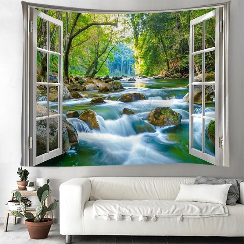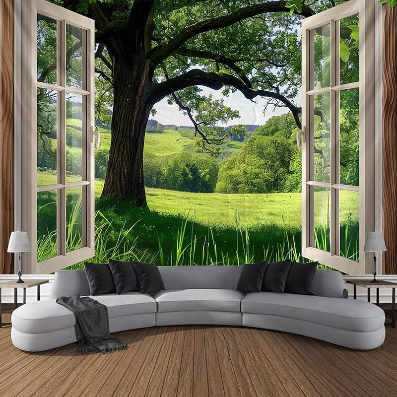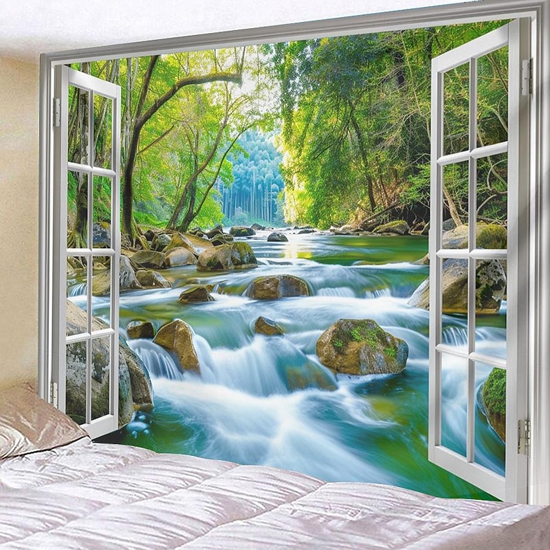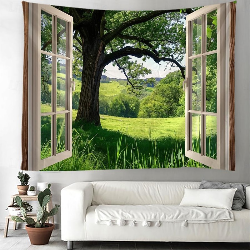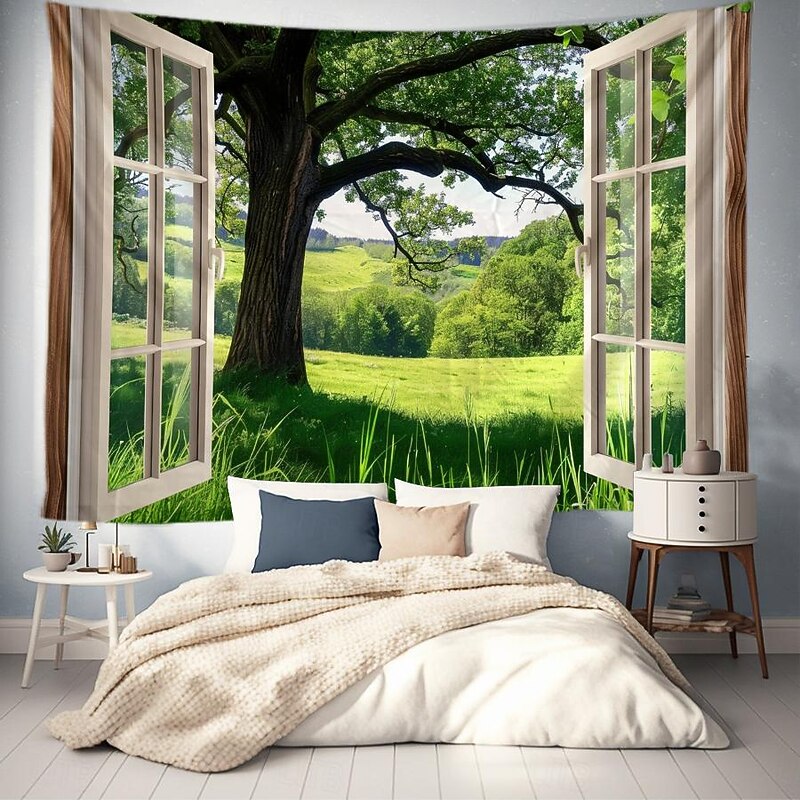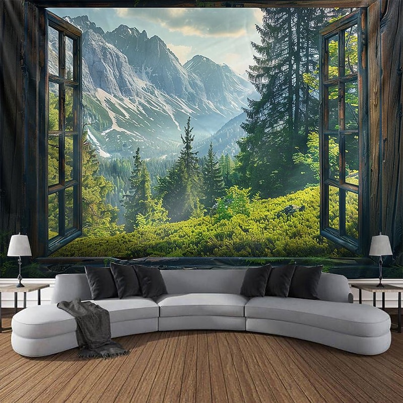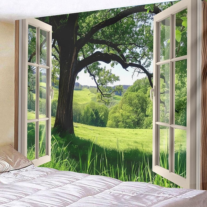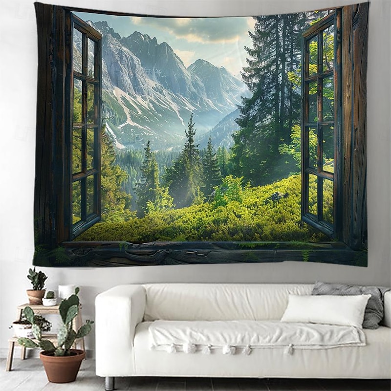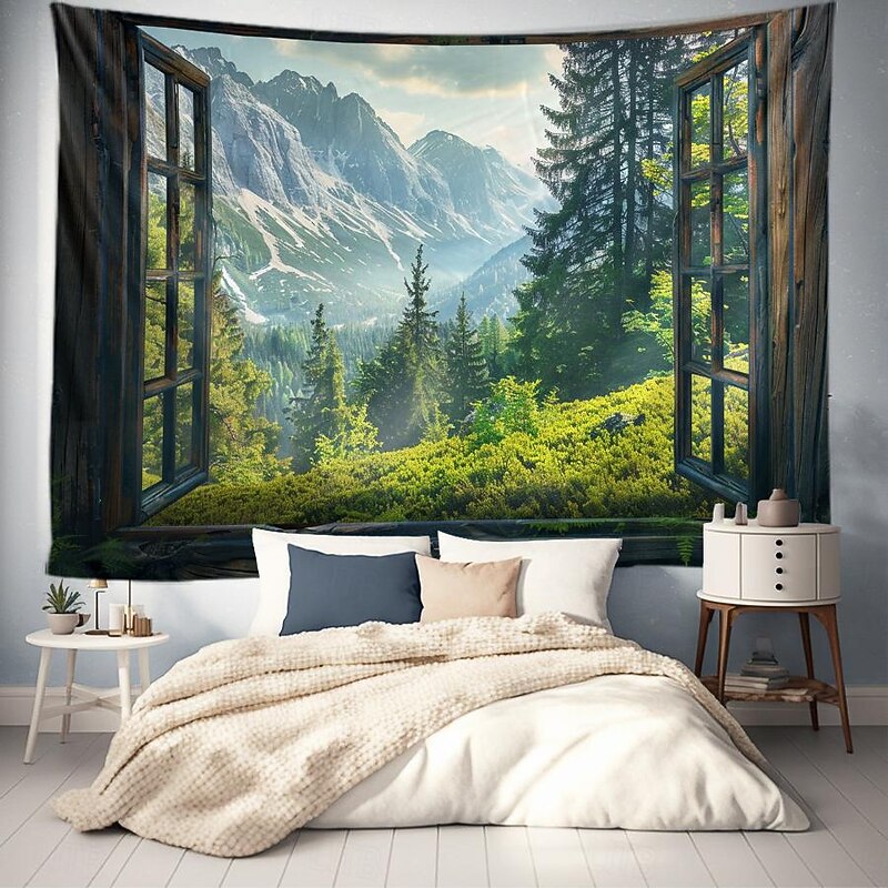 must-have ! Windows Woods Landscapes Large Tapestries Art Blankets Curtains Family Bedrooms Living Room Decorations