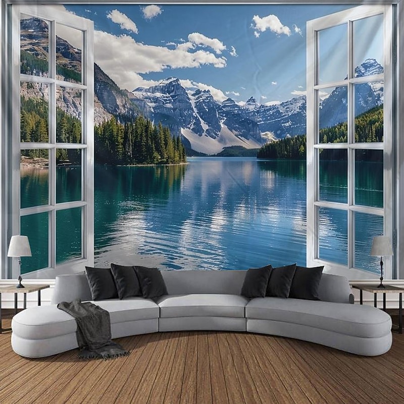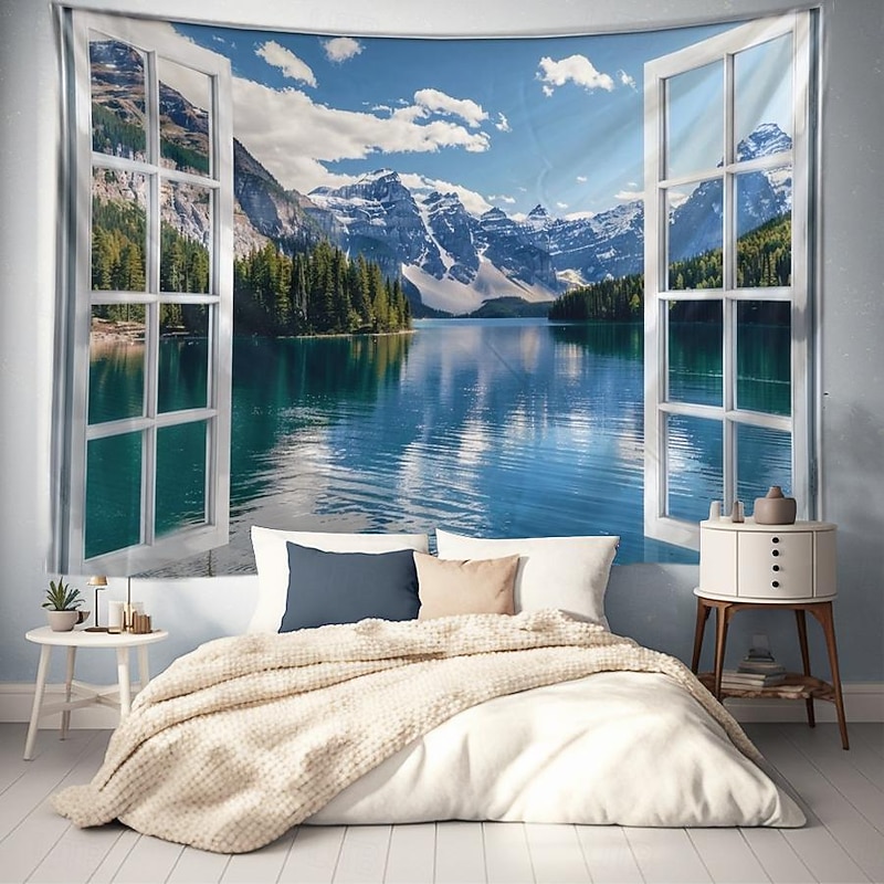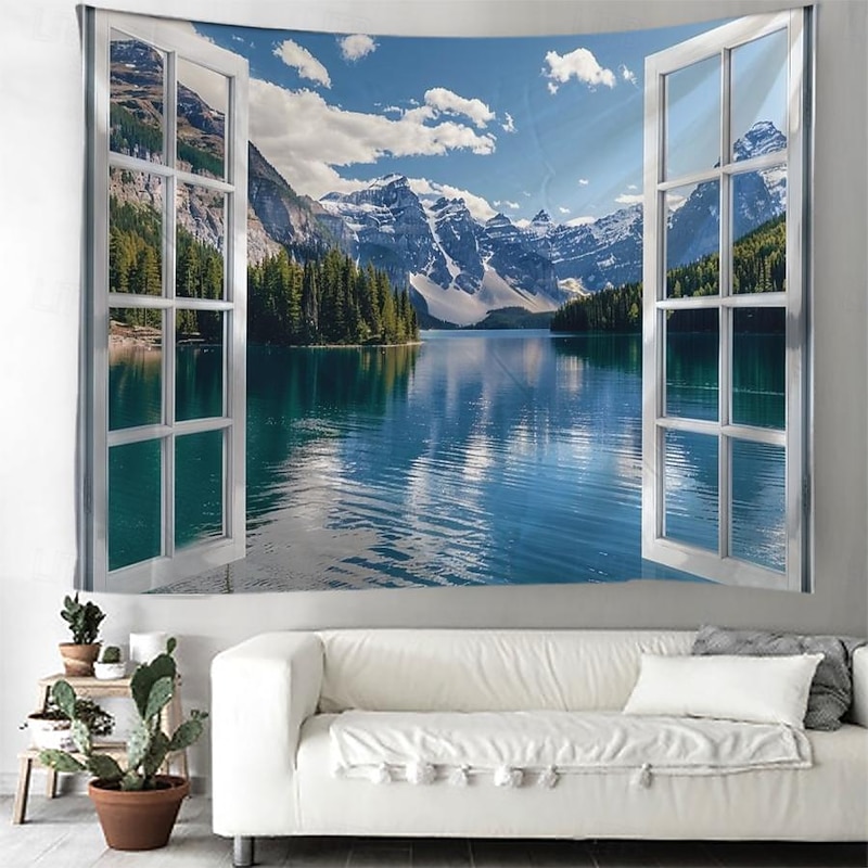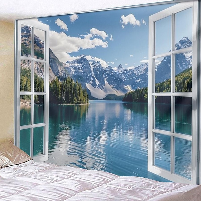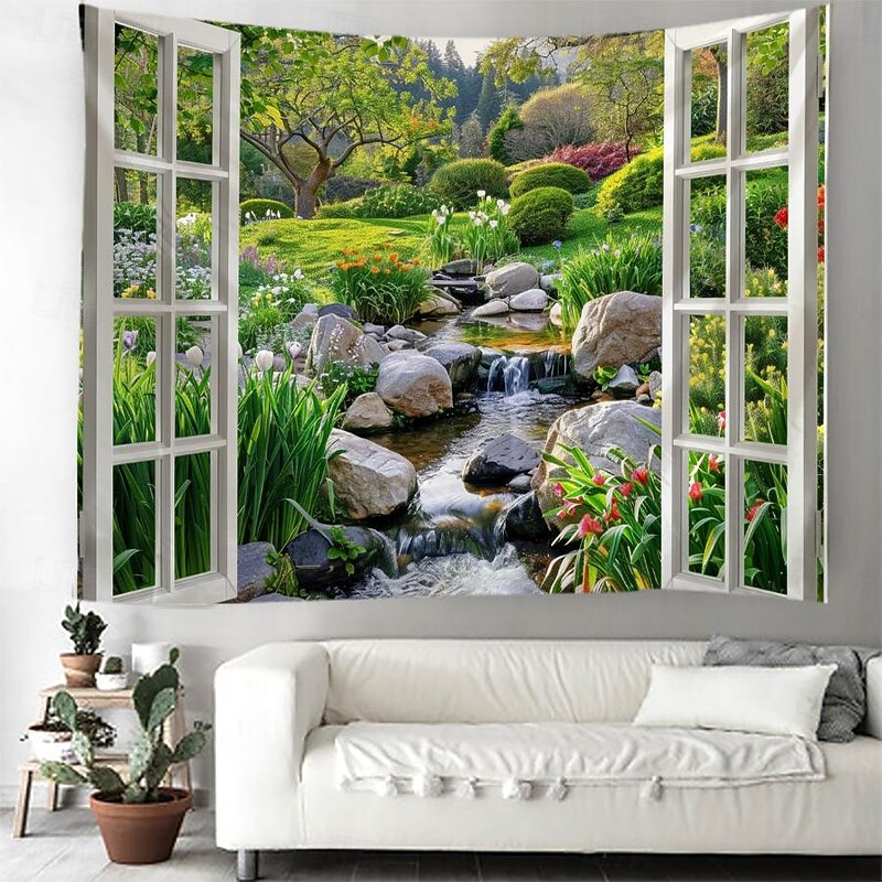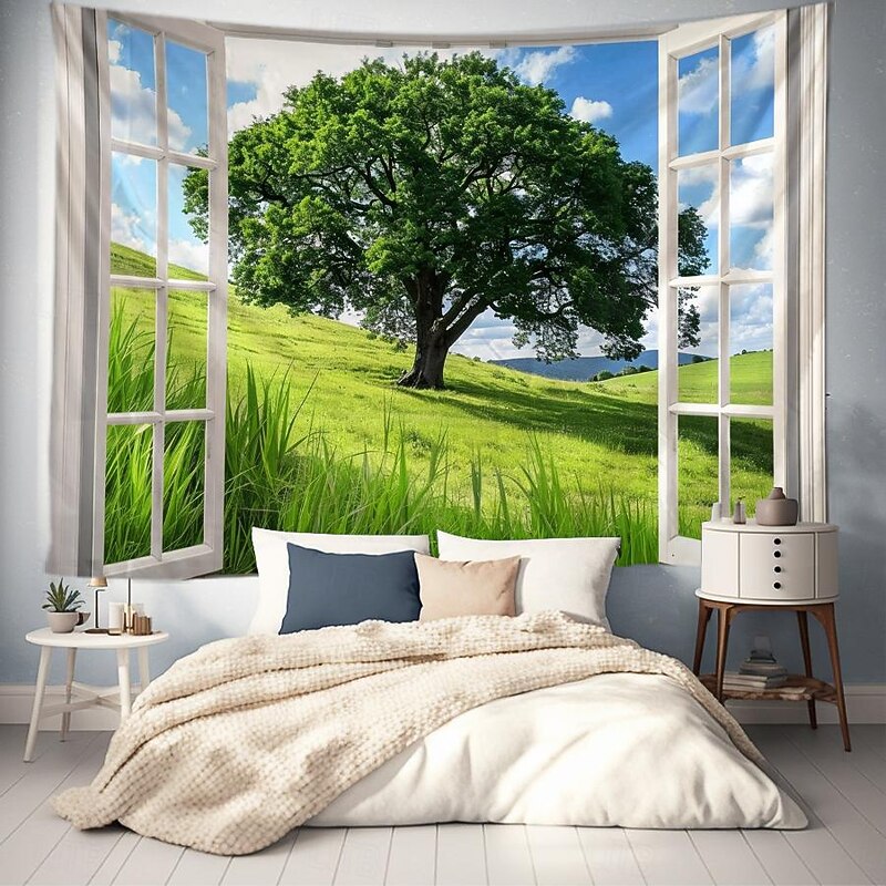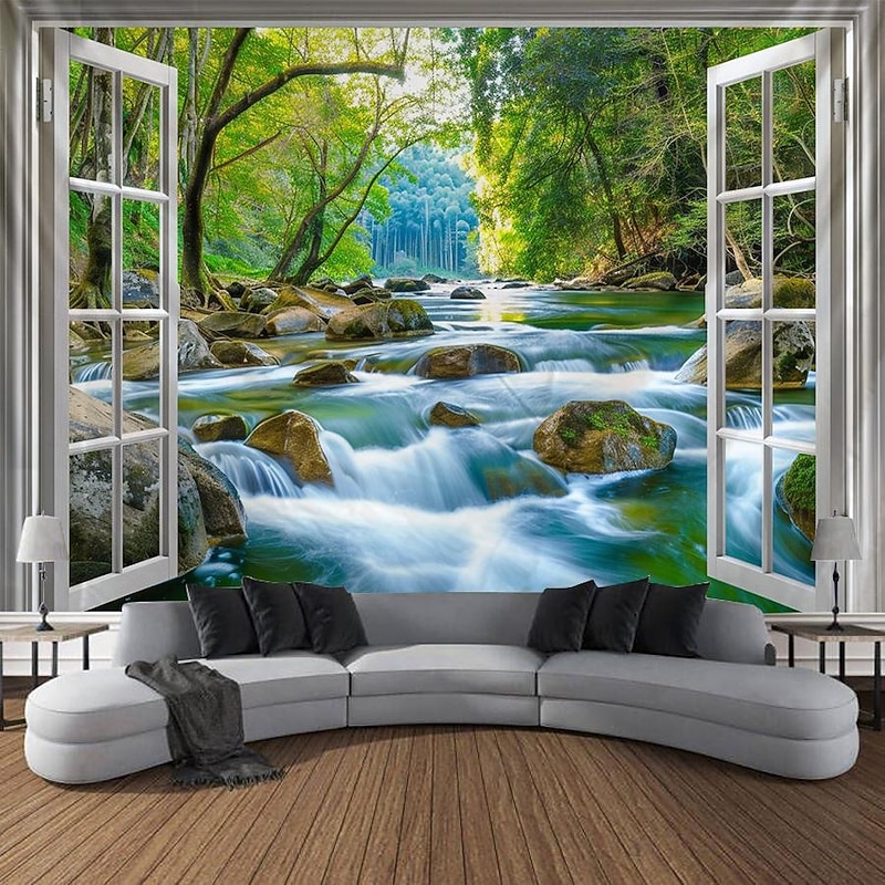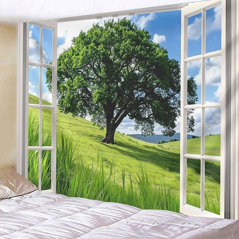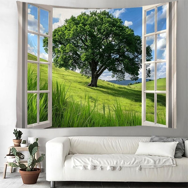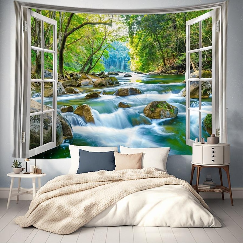 must-have ! Windows Woods Landscapes Large Tapestries Art Blankets Curtains Family Bedrooms Living Room Decorations