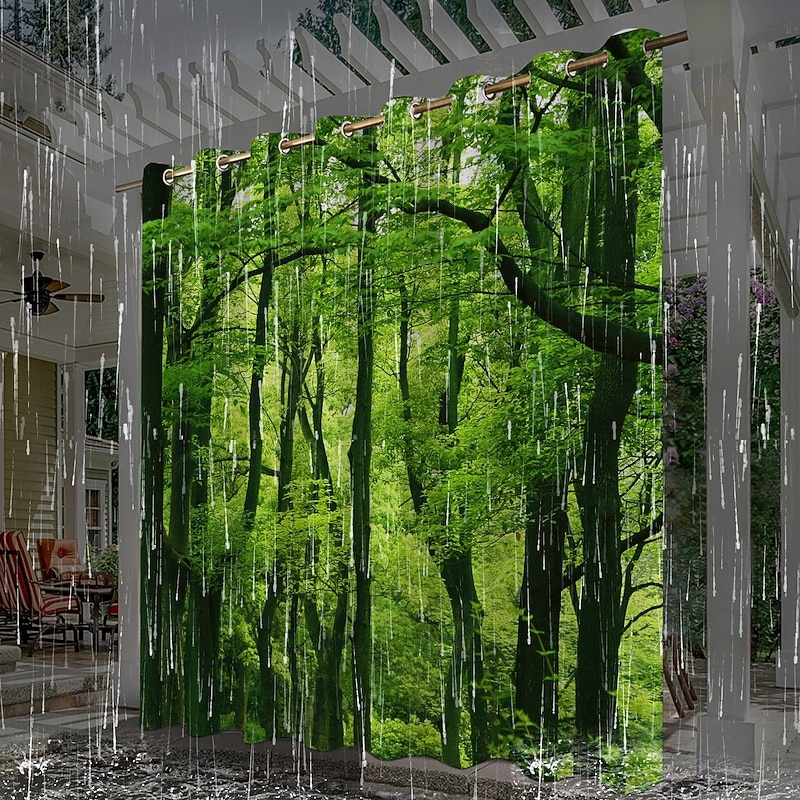 must-have ! Waterproof Outdoor Curtain Privacy, Sliding Patio Curtain Drapes, Pergola Curtains Grommet 3D Forest Landscape For Gazebo, Balcony, Porch, Party, 1 Panel
