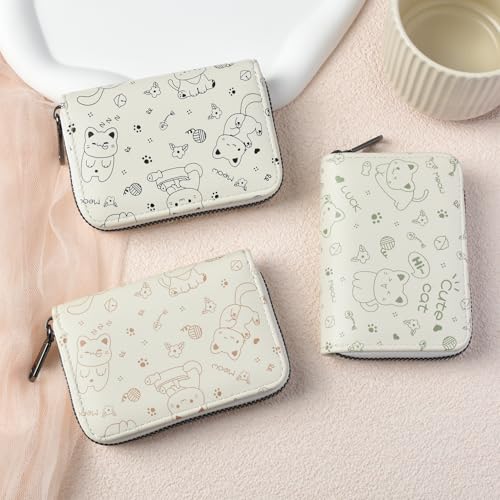 must-have ! Wallet Kitten Cats Women Small Wallet for Women Textured Leather Bifold Compact Blocking Card Bag for Women with Zipper Coin Pocket,Students Cute Purse, Light Brown