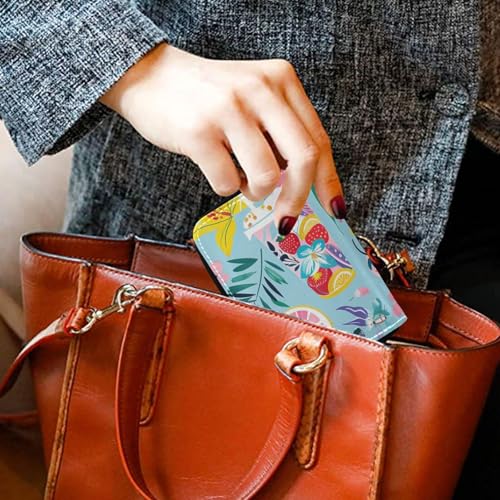 Vibrant Summer-themed Pattern leather card holder wallet women With 2 cash slot RFID Blocking card holder with zipper 7