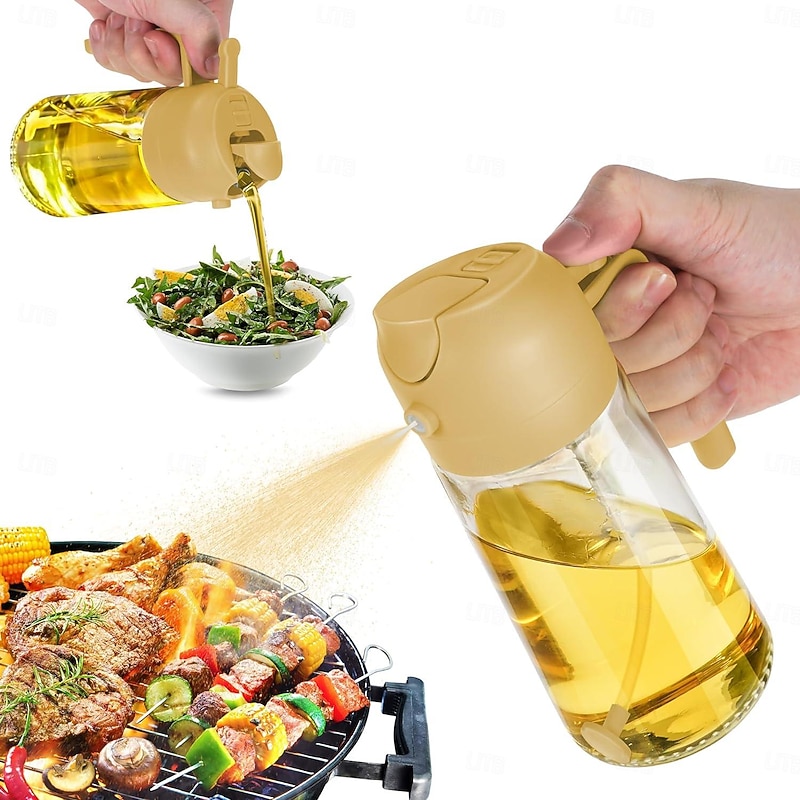 must-have ! 2 in 1 Glass Oil Sprayer & Dispenser 16oz for Kitchen 470ml Olive Oil Bottle Oil Sprayer for Cooking, Kitchen, Salad, Barbecue