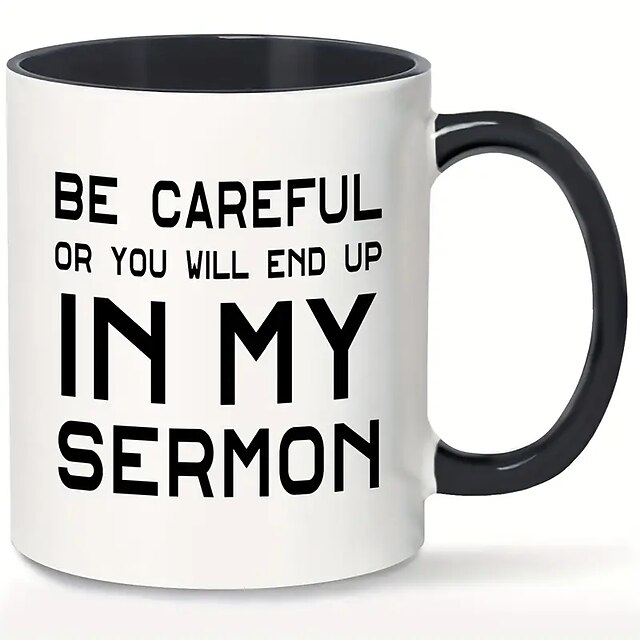 1pc Pastor Gift Mug Ceramic Coffee Mug 11oz White With Black Handle Be Careful Or You'll End Up In My Sermon Mug Pastor Appreciation Gifts For Anniversary Birthday Christmas Preacher Minister Gi 4