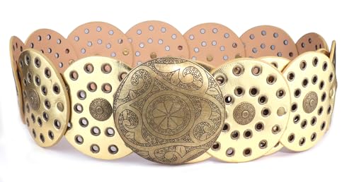 Wide Disc Belts for Women Vintage Western Waist Belt Concho Leather Disk Belt Boho Belt