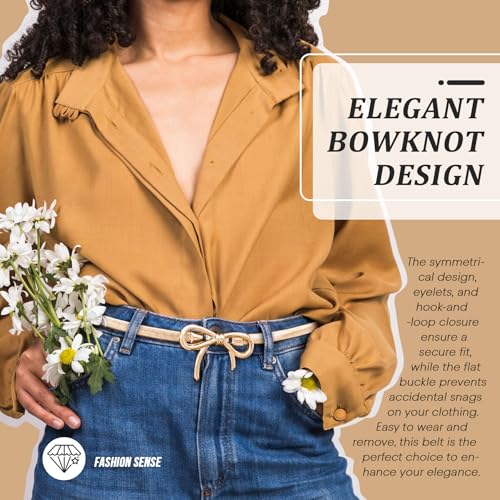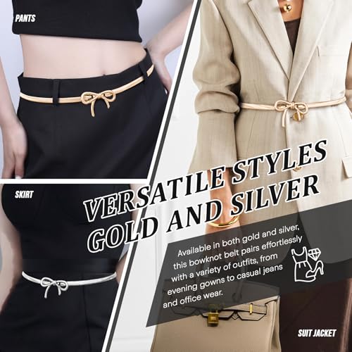 2 Pcs Bow Belts For Women, Skinny Gold Belt Waist Belt, Adjustable Stretchy Fashion Waistband With Bow-Knot for Dresses Jeans