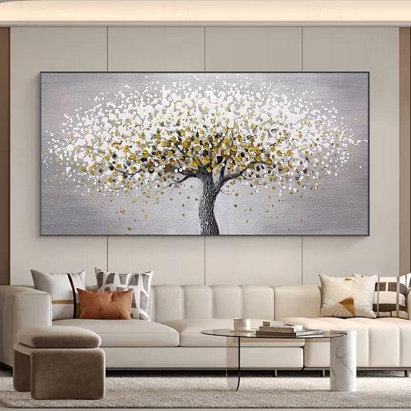 Why Choose Handmade Canvas Wall Art Living Room Decorative Painting current easy Sofa Background Wall Light Luxury Oil Painting Fortune Tree for Home Decor Rolled Frameless Unstretched Painting?