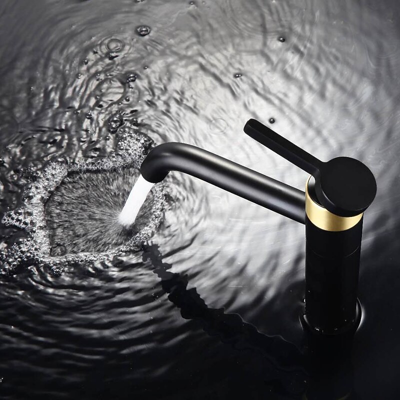 must-have ! Bathroom Sink Mixer Faucet Tall, 360 Swivel Single Rotatable Handle Mono Basin Taps Deck Mounted, Washroom Monobloc Vessel Tap with Cold sought-after Hose Chrome Golden Black