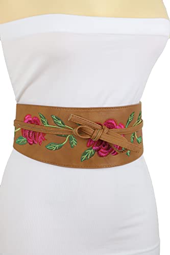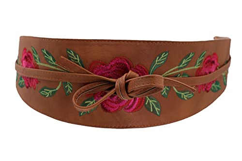 Why Choose Women Black Tie Fashion Belt - Wrap Around Faux Leather Wide Waistband Flower Kimono S M?
