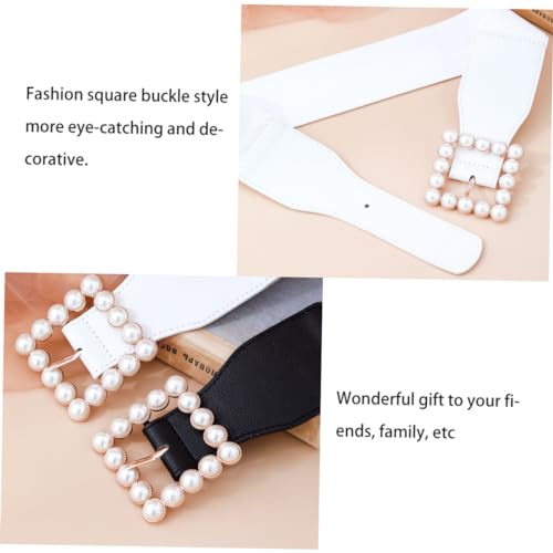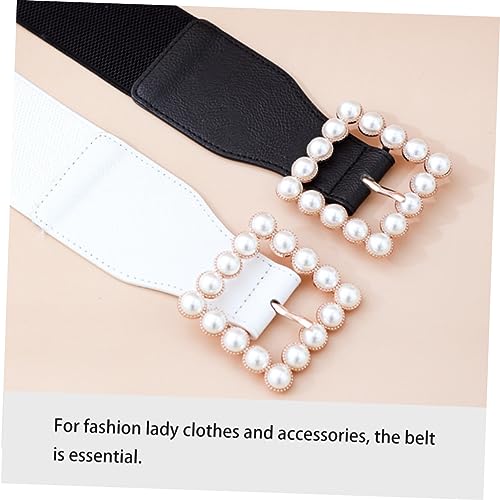 Ladies Elastic Pearl Waist Belt with Square Buckle Simple Cummerbund Skirt Ornament for Dresses and Outfits White 5
