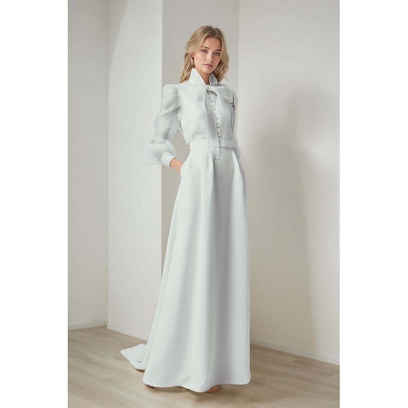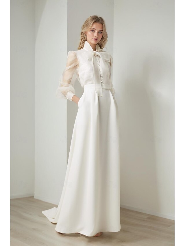 $199.99 - Mermaid / Trumpet Evening Gown Elegant Dress Formal Wedding Court Train Long Sleeve Shirt Collar Belt / Sash Organza with Bow(s) 2025. Shop for cheap Wedding Dresses online? Buy at lightinthebox.com on sale today!