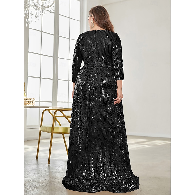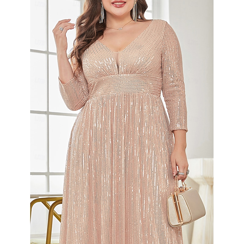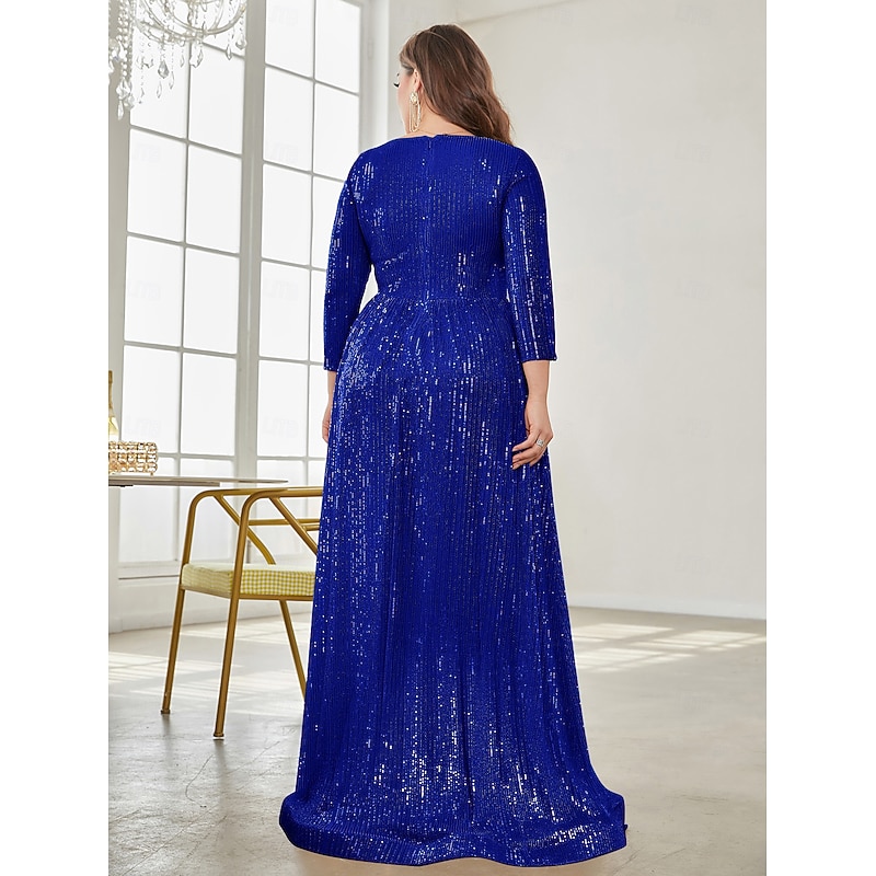 More information about A-Line Party Dresses Elegant Dress Formal Floor Length Long Sleeve V Neck Fall Wedding Guest Sequined with Glitter Sequin