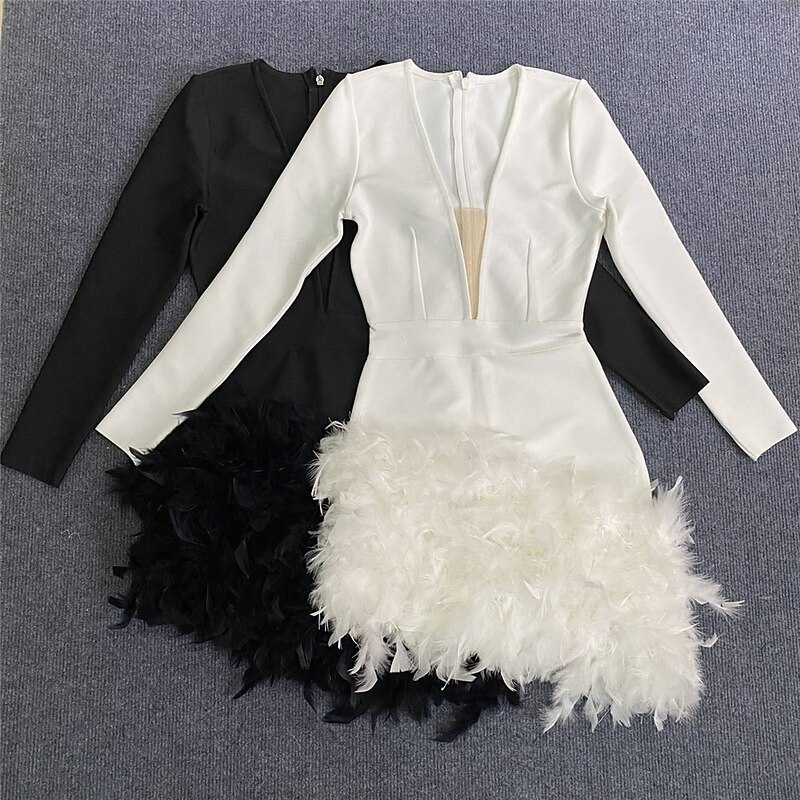Sheath Homecoming Dresses Elegant Dress Holiday Homecoming Short / Mini Long Sleeve V Neck Polyester with Feather  dress to impress 18