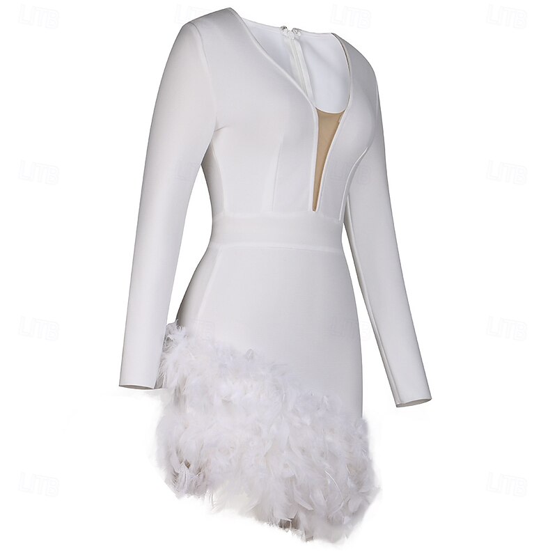 must-have ! Sheath Homecoming Dresses Elegant Dress Holiday Homecoming Short / Mini Long Sleeve V Neck Polyester with Feather dress to impress