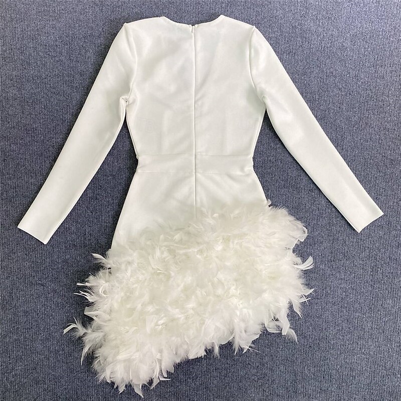 Sheath Homecoming Dresses Elegant Dress Holiday Homecoming Short / Mini Long Sleeve V Neck Polyester with Feather  dress to impress 2