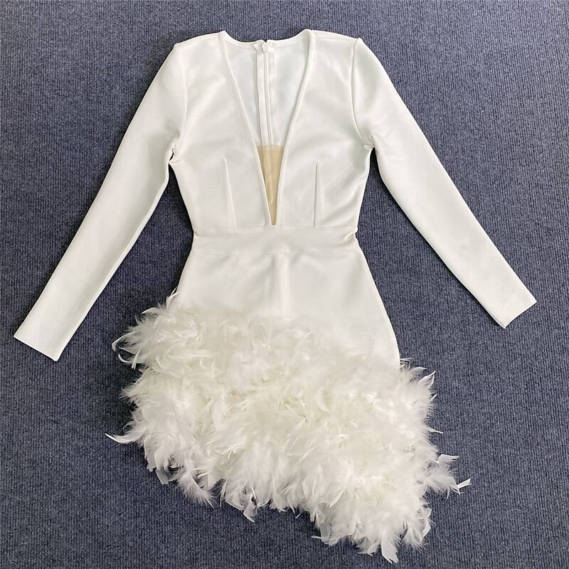Sheath Homecoming Dresses Elegant Dress Holiday Homecoming Short / Mini Long Sleeve V Neck Polyester with Feather  dress to impress 4