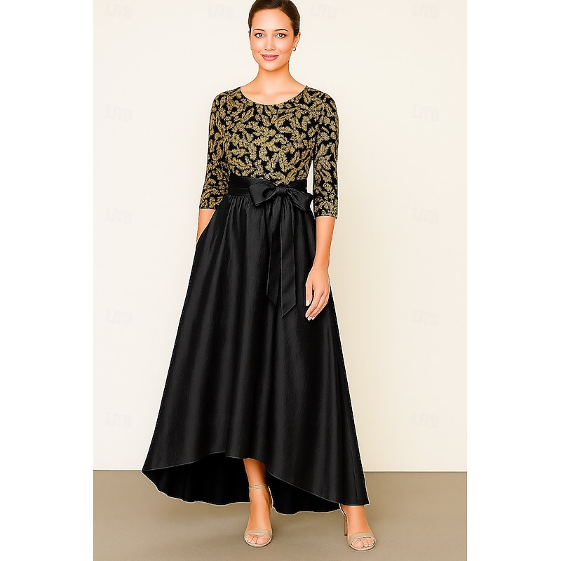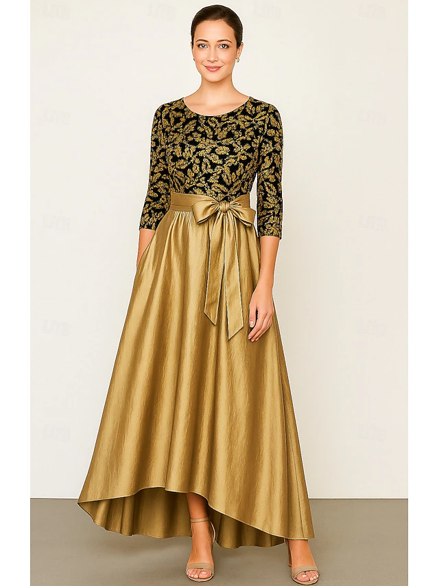 Why Choose Gold Black Sequined A-Line Evening Gown Elegant Formal Dress Formal Wedding Asymmetrical Short Sleeve Crew Neck Pocket Satin with Floral Print 2025?