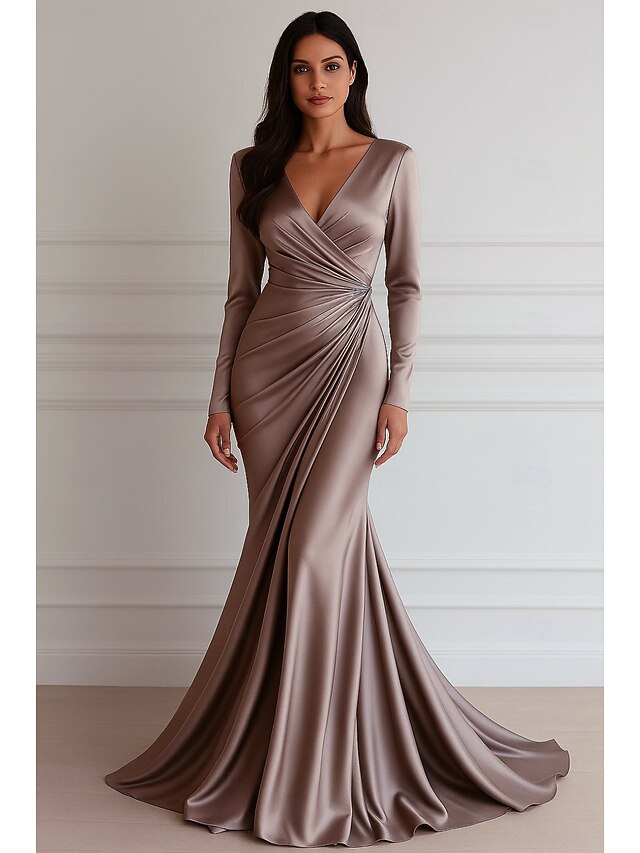 $144.99 - Mermaid / Trumpet Evening Gown Elegant Dress Formal Wedding Floor Length Long Sleeve V NeckDress Stretch Satin with Pleats 2025. Shop for cheap Mermaid Evening Dresses online? Buy at lightinthebox.com on sale today!