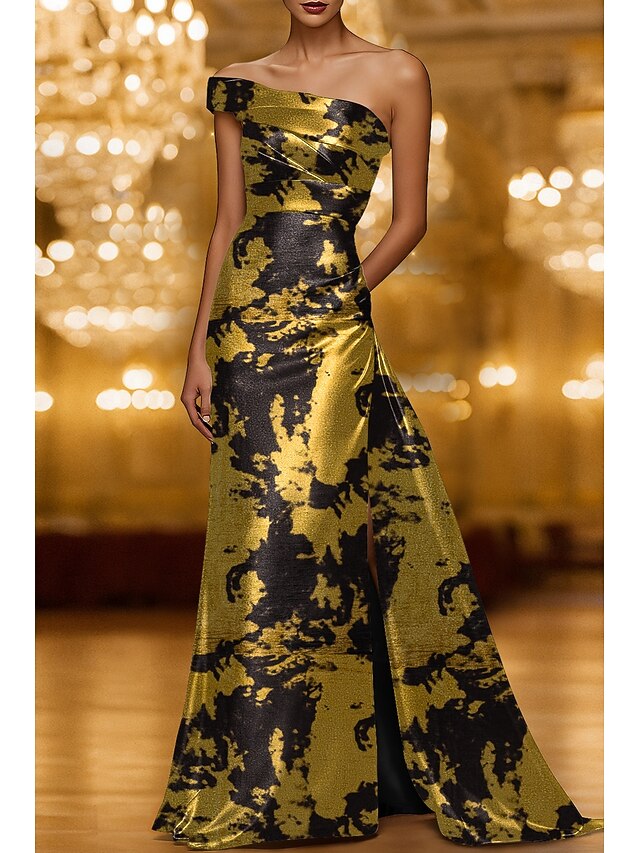 $149.99 - Black Gold A-Line Evening Gown Elegant Formal Dress Formal Wedding Floor Length Sleeveless One Shoulder Pocket Satin with Floral Print 2025 2025. Shop for cheap A-Line Evening Dresses online? Buy at lightinthebox.com on sale today!