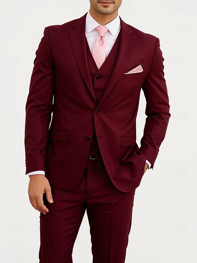 $122.99 - Men's Wedding Business Suits Notch Lapel Burgundy Navy Blue Fashion Formal Solid Colored Standard Fit 3 Piece Single Breasted Two-buttons 2025. Shop for cheap Formal Suits online? Buy at lightinthebox.com on sale today!
