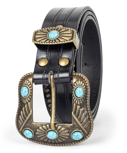 must-have ! Utaly Vintage Cowgirl-Western-Leather-Belts for Women Adjustable Turquoise-Buckle-Belt West-Cowboy-Belt for Jeans 28“-35”