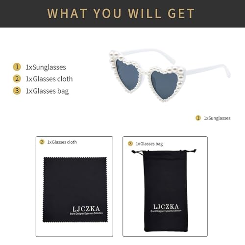 More information about LJCZKA Luxury adore Pearl Sunglasses Women Heart Shaped Cat Eye Sun Glasses Party Festival Shimmering Bling Eyewear