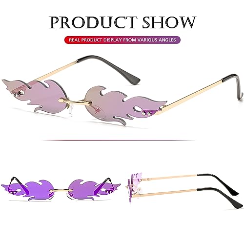 PORADAY Fire Flame Sunglasses for Women Men Trendy Retro Rimless Glasses Vintage Wave Fire Shaped Frameless Eyeglasses 2