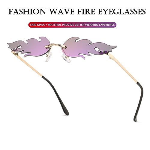 PORADAY Fire Flame Sunglasses for Women Men Trendy Retro Rimless Glasses Vintage Wave Fire Shaped Frameless Eyeglasses 4