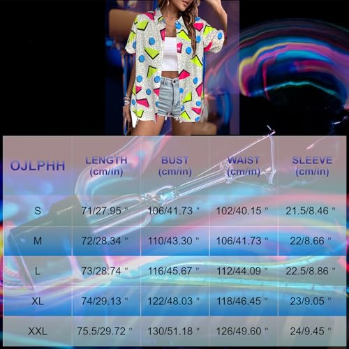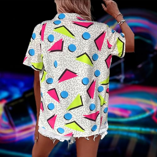80s 90s Outfits Women Hawaiian Retro Birthday Party Button Down Shirts Disco Neon Short Sleeve Blouse Tops
