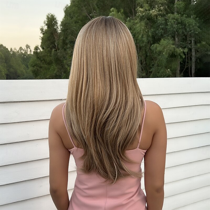 Why Choose Synthetic Wig Uniforms Career Costumes Princess Straight kinky Straight Middle Part Layered Haircut Machine Made Wig 22 inch Black / Gold Synthetic Hair Women's Cosplay Party Fashion Black / Blonde?