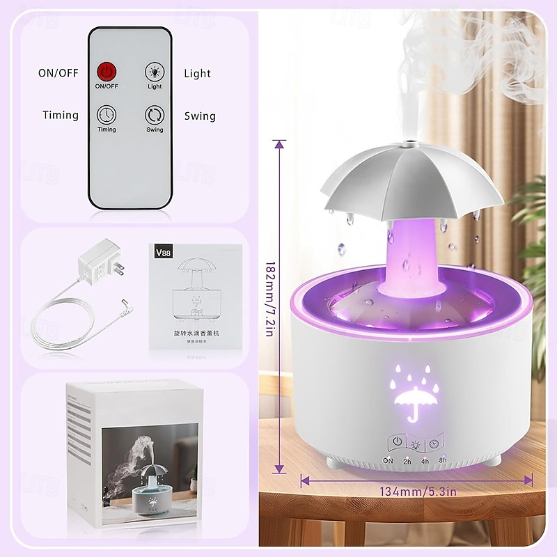 $55.99 - 300ML LED Smart Light Umbrella Rain Humidifier with 7-Color LED Light, Remote & Timer Aroma Diffuser for Bedroom, Fun Gift for Kids, Teens & Women 2025. Shop for cheap Decorative Lights online? Buy at lightinthebox.com on sale today!