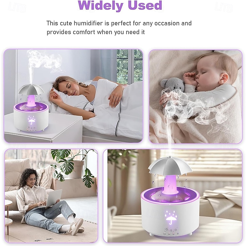 300ML LED Smart Light Umbrella Rain Humidifier with 7-Color LED Light, Remote & Timer Aroma Diffuser for Bedroom, Fun Gift for Kids, Teens & Women 11