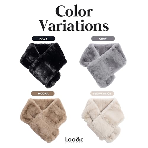 Women's Faux Fur Tippet Scarf, Thick Fluffy Neck Warmer, Soft Snood, Easy to Wear, Cold-Weather Protection 7