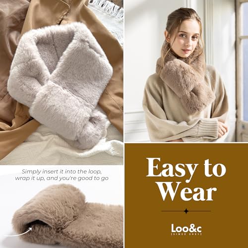 Women's Faux Fur Tippet Scarf, Thick Fluffy Neck Warmer, Soft Snood, Easy to Wear, Cold-Weather Protection 4