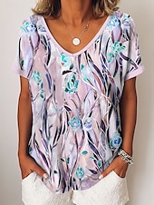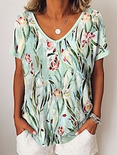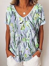 Why Choose Women's T Shirt Graphic Plants Vintage Casual Short Sleeve V Neck Regular Tops Daily Weekend Vacation Wear Print Blue Purple Green Summer Spring?