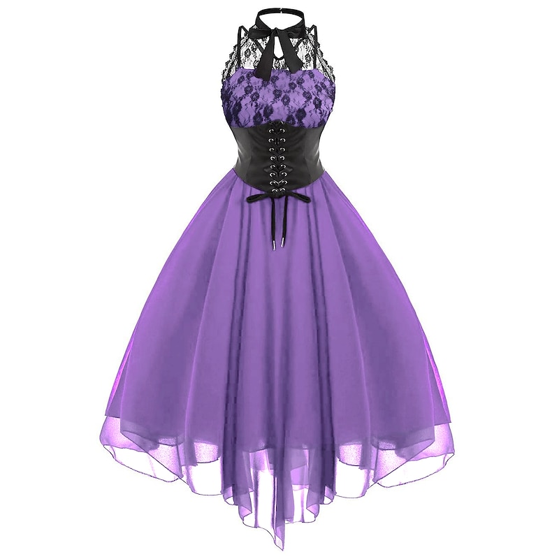Why Choose Women's Sleeveless Gothic Dress with Corset Halter Lace Swing Cocktail Dress Tulle Dress Formal Casual Halloween Punk Hippie Dresses?