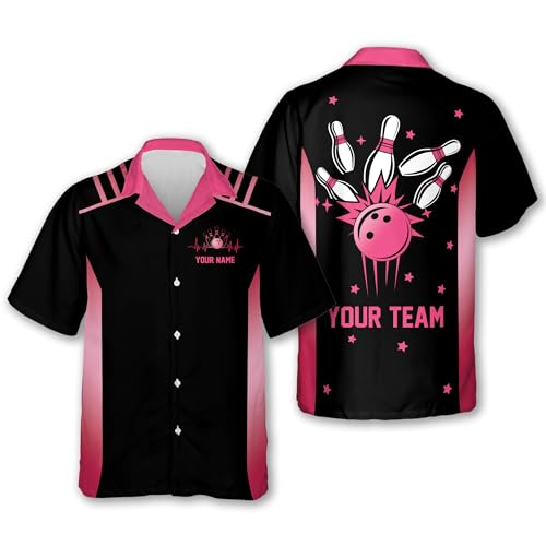LASFOUR Custom Funny Bowling Shirts with Name Retro, Vintage Bowling Button-Down Short Sleeve Hawaiian Shirt Bowling for Men