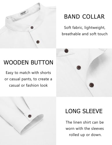 COOFANDY Men's Casual Henley Shirt Long Sleeve Band Collar Shirts Summer Beach Hippie Button T-Shirts 4