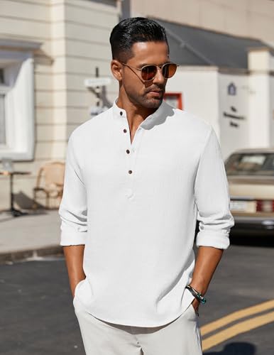 must-have ! COOFANDY Men's Casual Henley Shirt Long Sleeve Band Collar Shirts Summer Beach Hippie Button T-Shirts