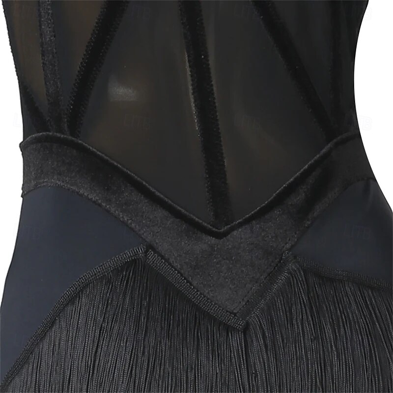More information about Latin Dance Dress Splicing Women's Performance Training Party Long Sleeve High Nylon