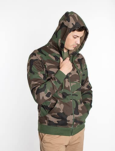 • first-class Mens Camo Hoodie made out of 80% Cotton 20% Polyester. Features a comfortable fleece inner lining and functional front pockets. Full Zip Hoodie