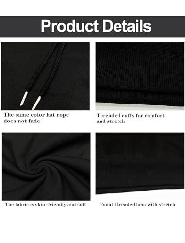 Mens 2024 Casual Cotton Hooded Collar Drawstring Black Hoodies Pullover Sweatshirts Casual Long Sleeve Shirts 4xl