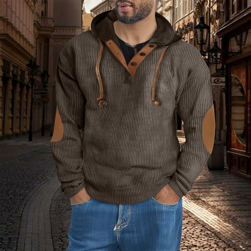 must-have ! Mens Casual Corduroy Hoodies 1/4 Zipper Outdoor Travel Long Sleeve Fall Pullover Sweatshirt with Elbow Patches
