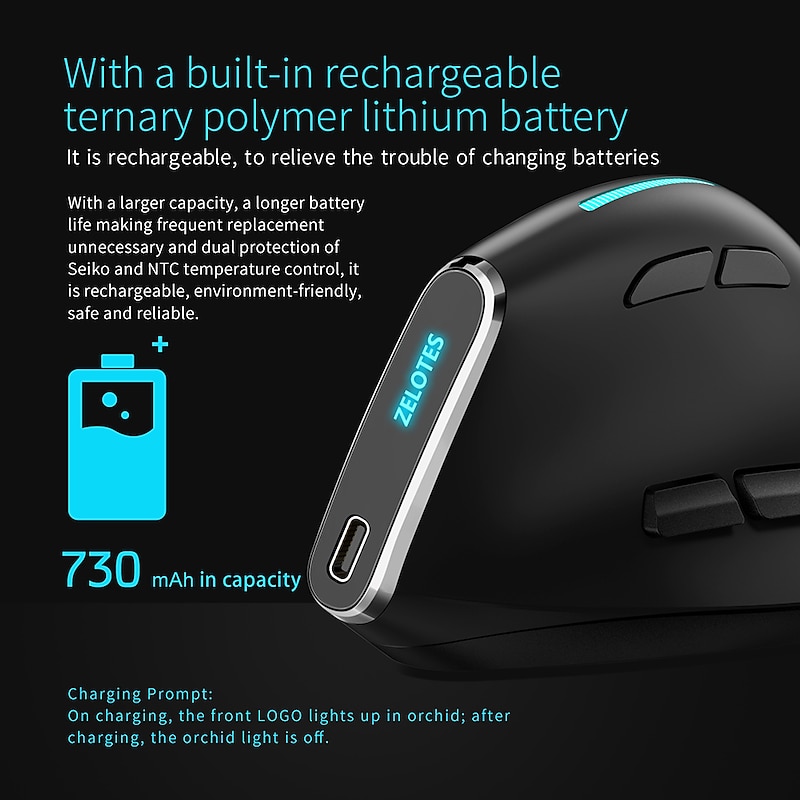 Highlights Features: 1. Connects to 3 Devices: Enjoy a cushy operating experience with the ability to connect to three devices simultaneously. 2. Stunning Lighting Effects: Set the mood with various lighting modes and full-color light strips that add atmosphere to your gaming sessions. 3. Balanced and Precise: The one-piece left and right buttons provide a more balanced force, ensuring a detailed and accurate operating experience. 4. Enhanced Comfort: The bionic rubber apron increases finger friction and offers a plush touch, reducing discomfort during long gaming sessions. 5. Onboard Storage: With 32Kb onboard built-in storage and a dedicated game chip, you can save your settings within the mouse and effortlessly transfer them to other computers without the need for software installation. Specifications: - Name: 2.4G Bluetooth-Compatible Mouse - Number of keys: 8 - Tracking System: Optical - Connection method: 2.4GHz + 1 Bluetooth-compatible 3.0-5.0 + 2 Bluetooth-compatible 3.0-5.0 - Frequency: 2402.85MHz-2480.85MHz - Effective distance: >10m - Working voltage/current: 3.7V/10mA - Built-in battery: 730mAh lithium battery - Button life: Approximately 3 million clicks - Roller life: Approximately 1.2 million revolutions - Resolution: 800-1200-1600-2000-2400 DPI - 2.4GHz rate of return: 125-500Hz - Bluetooth-compatible rate of return: 90-115-133Hz - Product size: Approximately 124.7 x 67 x 27mm / 4.88 x 2.76 x 2.64 inches - Product weight: 105 ±5g Bluetooth-compatible Mode: - Easily pair with your first device by turning on the mouse power switch and holding the Bluetooth-compatible button for 3 seconds. - Complete the pairing process on your device, following the instructions provided for different operating systems. - To pair a second device, simply press the Bluetooth-compatible button to switch channels and repeat the pairing process. - Enjoy seamless switching between up to 3 paired devices using the Blu