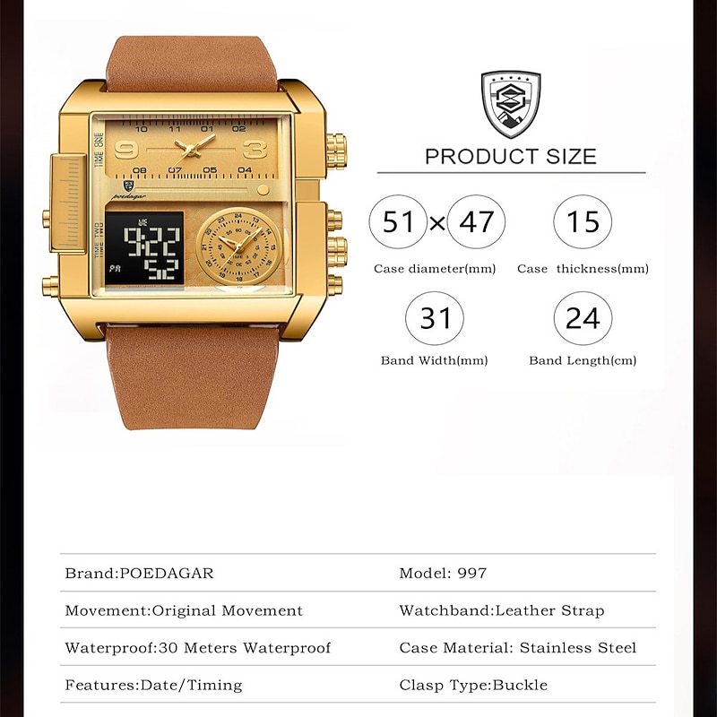 More information about POEDAGAR Luxury Men Quartz Watch Sports Rectangle Waterproof Multifunction Analog Quartz Wristwatch Luminous Calendar Men Watch Digital Men's Watches