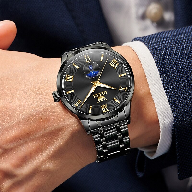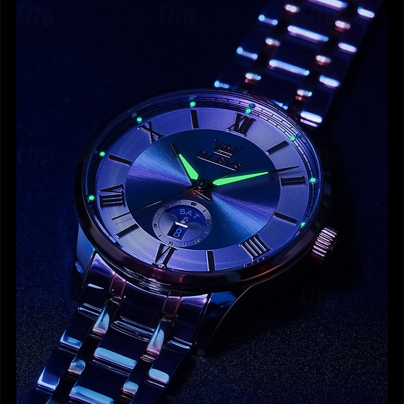 The New Olevs Men'S Business Watch With Luminous Calendar Day Display Quartz Watch Is A Fashionable Trendy Casual And Waterproof Men'S Sports Watch 5
