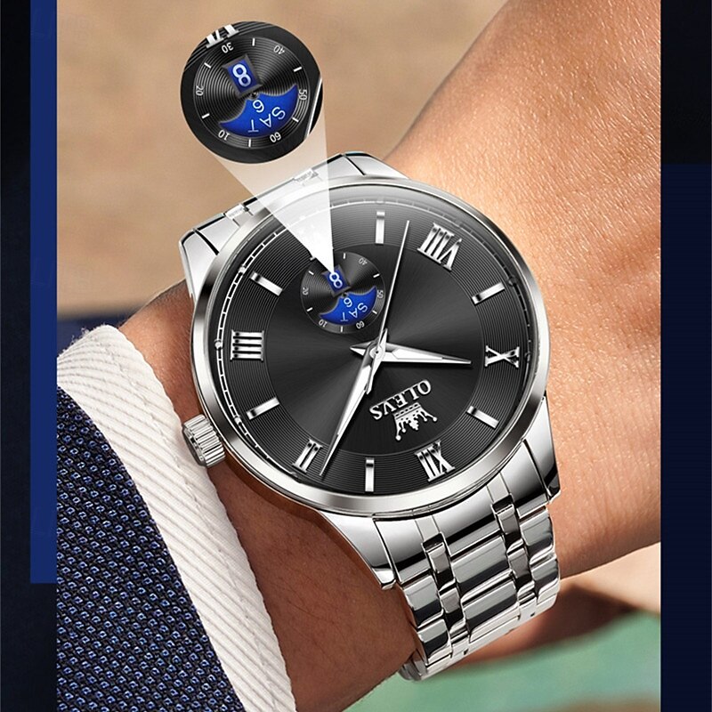 The New Olevs Men'S Business Watch With Luminous Calendar Day Display Quartz Watch Is A Fashionable Trendy Casual And Waterproof Men'S Sports Watch 4