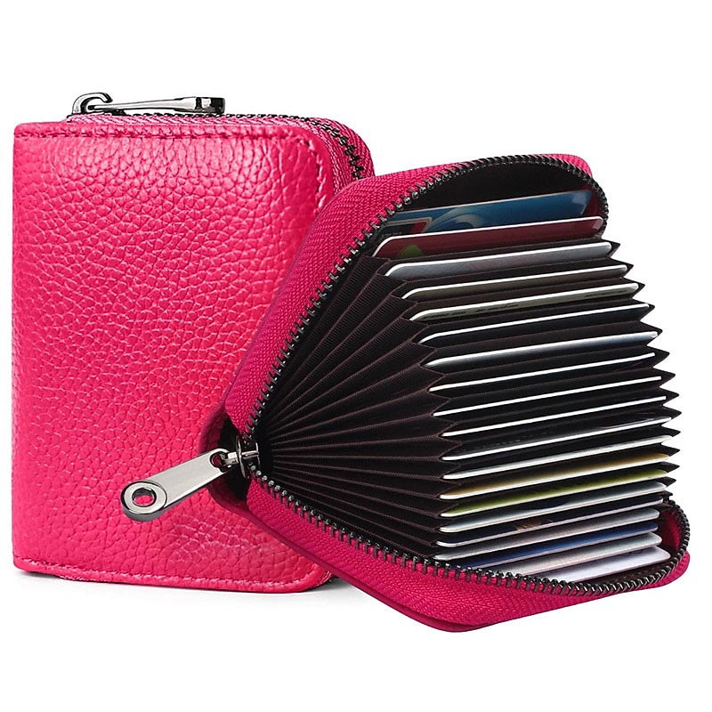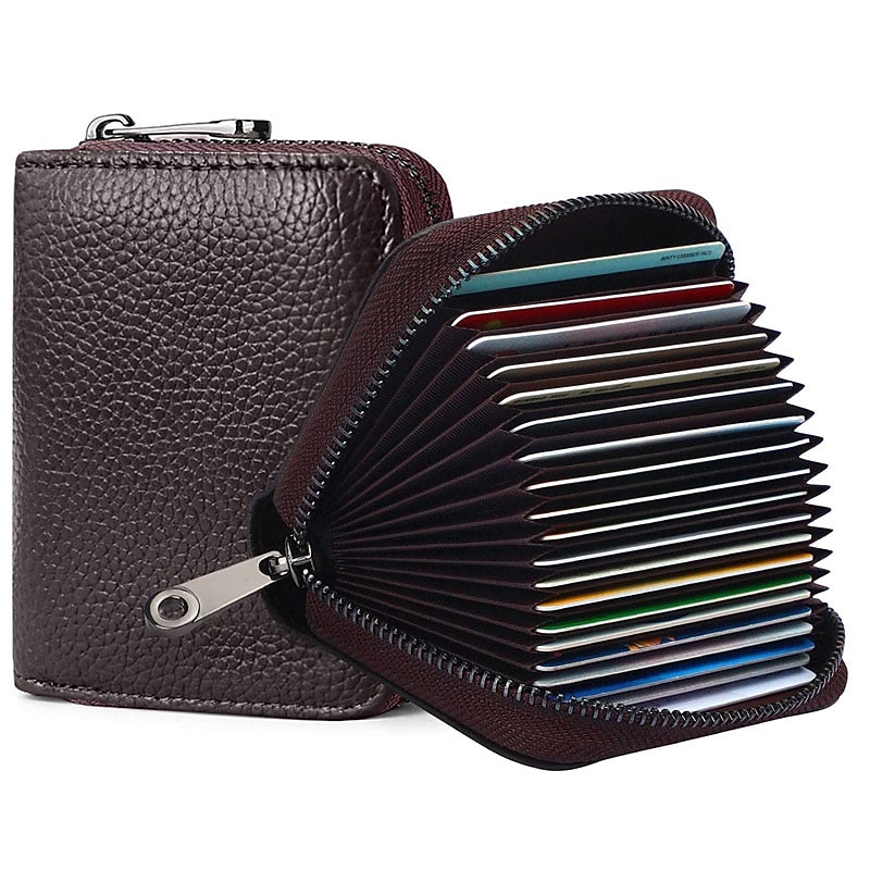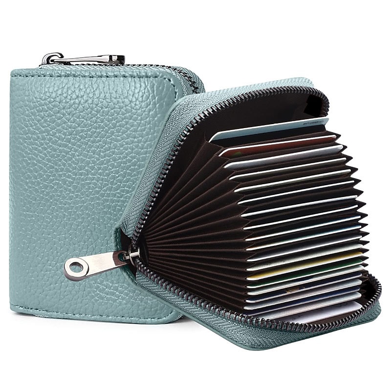 More information about RFID 20 Card Slots Credit Card Holder Genuine Leather Small Card Case for Women or Men Accordion Wallet with Zipper
