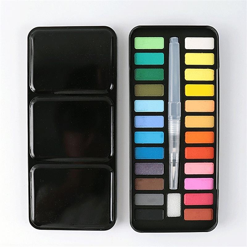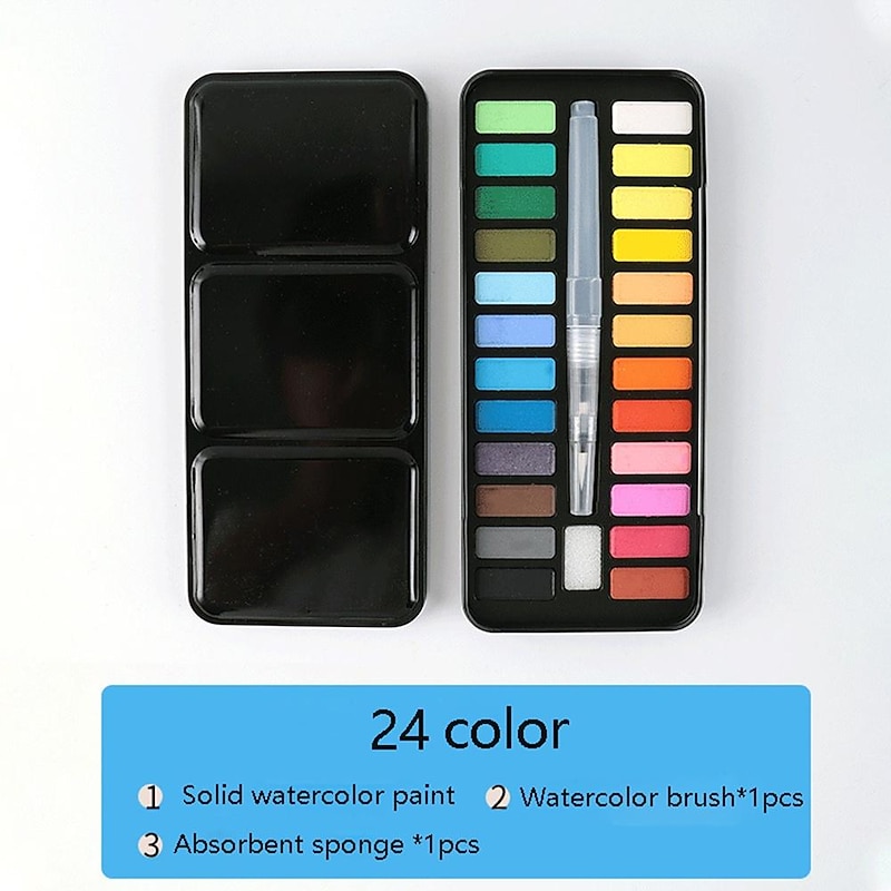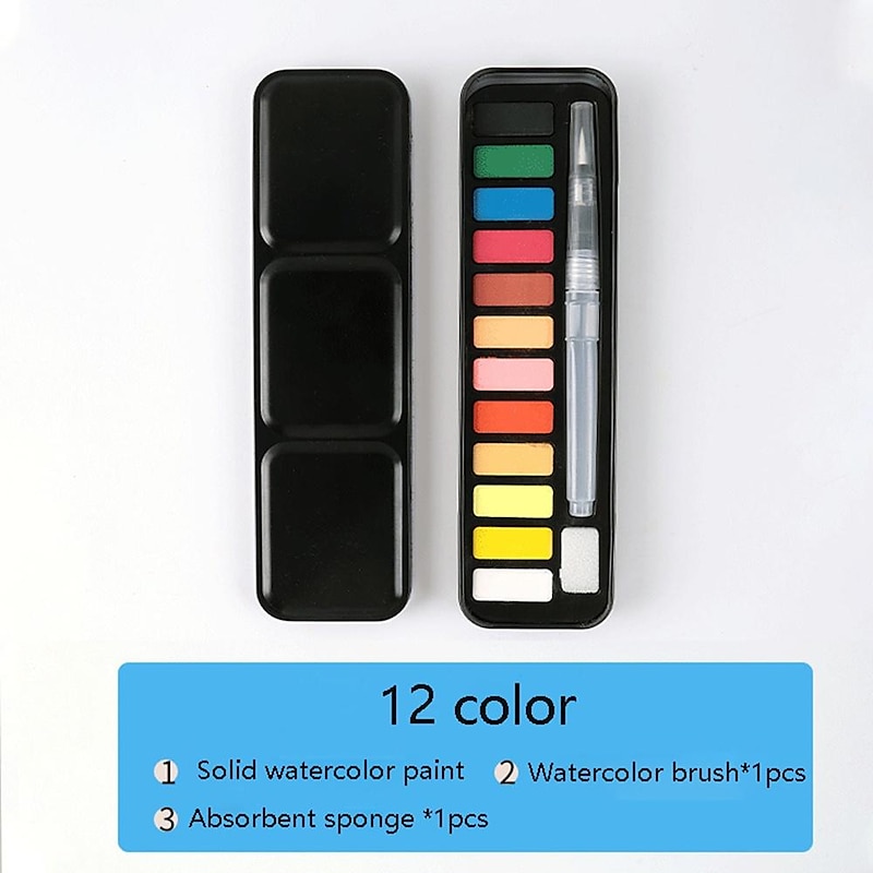 must-have ! 12/18/24Colors Solid Watercolor Paint Set With Paintbrush Portable Watercolor Pigment Set Art Supplies